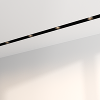 A hybrid solution with spots and general lighting is possible with the 2LOOK4 profile 25 range. Adjustable spotlights in three sizes (ø 30-40-60 mm) with different lenses and lumen packages can be magnetically installed on the MAGTRACK, ensuring tool-free mounting and repositioning. The inner side of the knife-edge extruded profile with a visible opening of 25 mm is fitted with 48 V conductors and is always black inside. A DC line still offers full control of individual track luminaires by sending commands via the DC power lines.