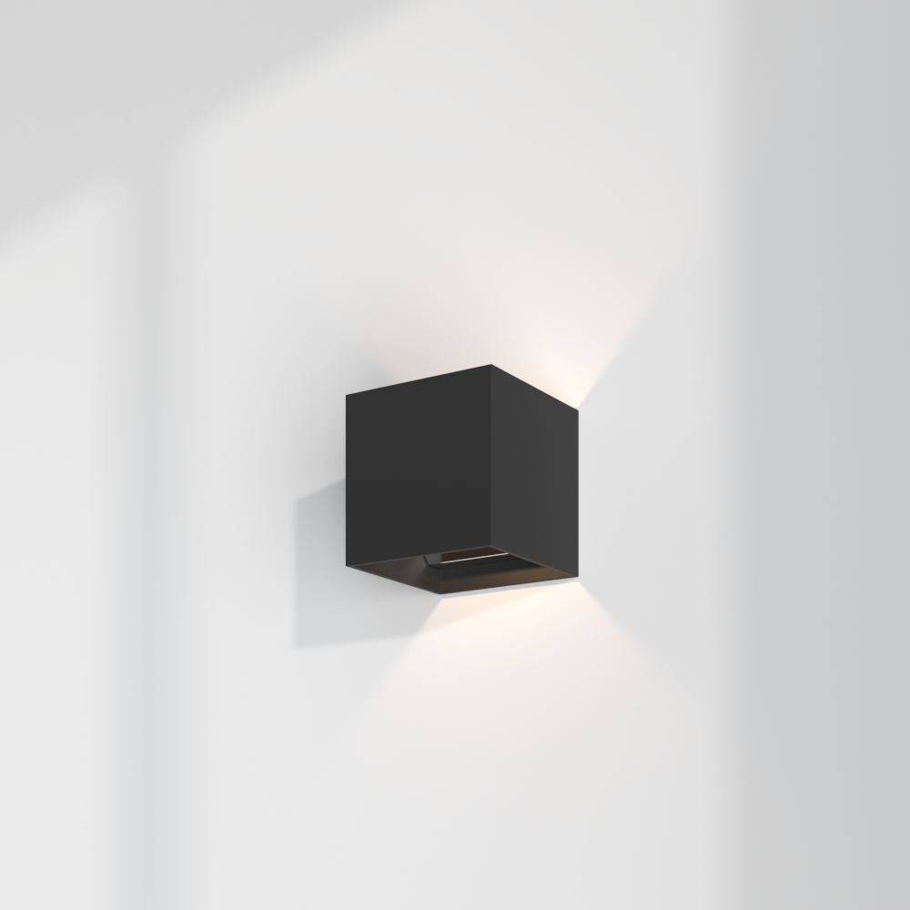DICE WALL garante uma iluminação máxima sem encandeamento, mesmo que o cubo esteja completamente aberto em cima e em baixo. Um LED integrado está instalado no interior do cubo, no meio da parede frontal. Este design torna a fonte de luz invisível a partir de qualquer ângulo e é perfeitamente adequado para escadas. A caixa com um driver integrado está disponível nos tamanhos de 100 ou 120 mm. A colocação inteligente ajuda a criar contornos de luz fortes e mágicos, uma caraterística especial do DICE WALL.